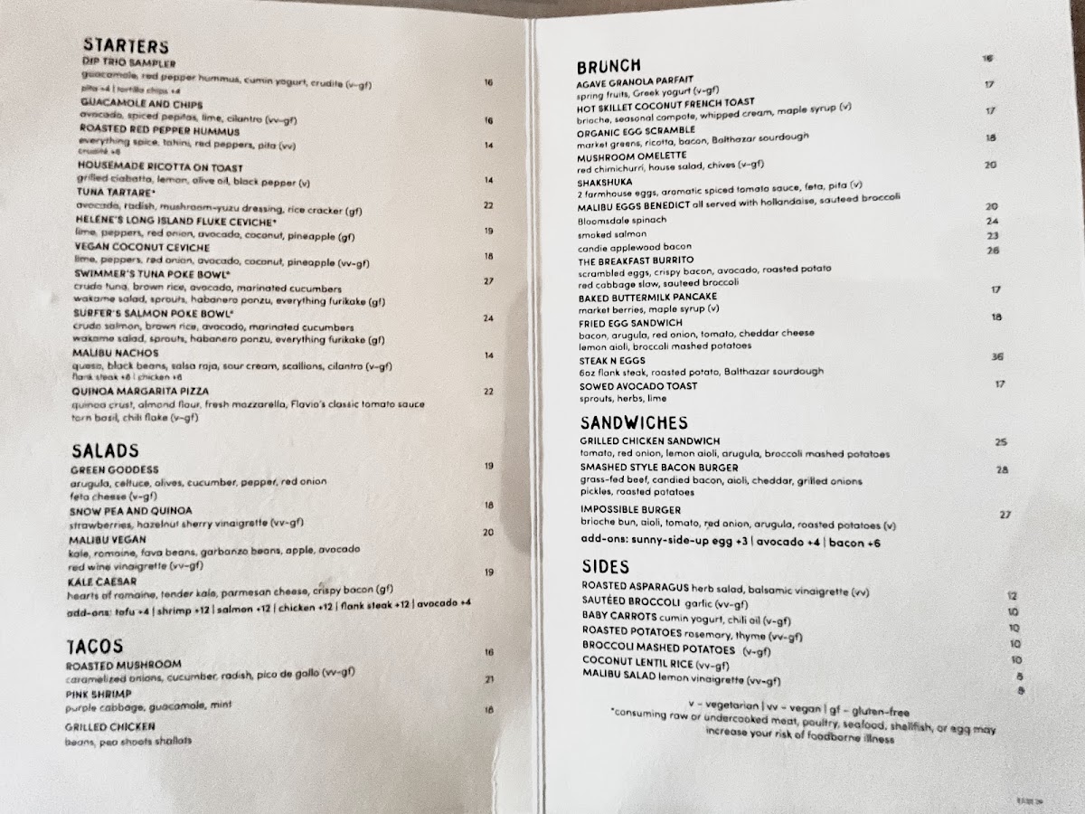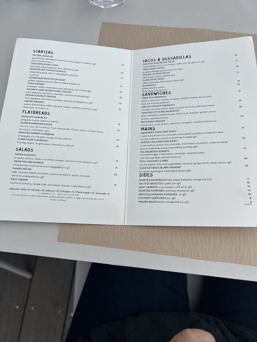 Malibu Farm Menu (2025 Update)